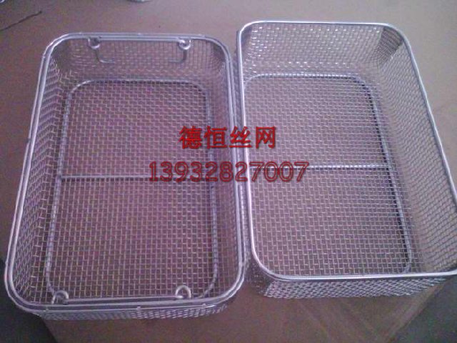 我廠生產(chǎn)的絲網(wǎng)沖壓型不銹鋼消毒筐現(xiàn)有尺寸有:48*25*6cm 28*20*6cm 34*25*6cm 30*25*6cm 38*30*5cm 40*30*5cm 25*17*7cm